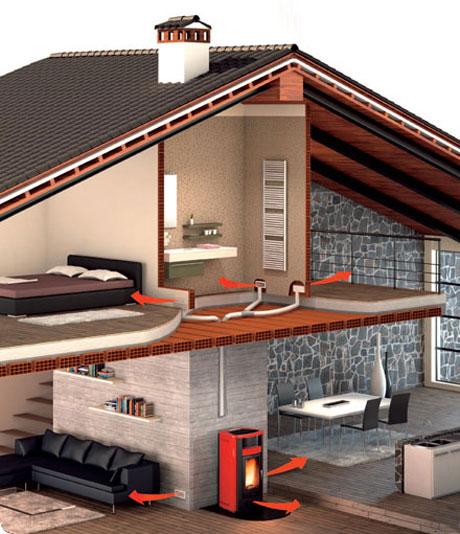 Multifuoco System® vam omogoča, da se temperatura v enem ali več prostorih enakomerno razporedi od tal do stropa.